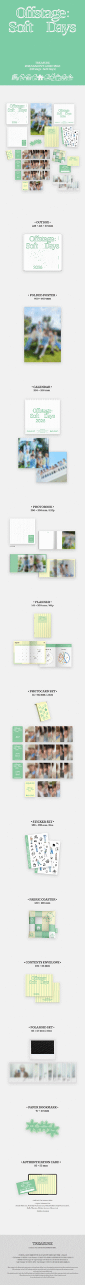 1. Purchasers of ‘TREASURE 2026 SEASON’S GREETINGS [Offstage : Soft Days] Full Package’ can access purchaser-only content by visiting the URL on the authentication card included in the package and entering the authentication code.